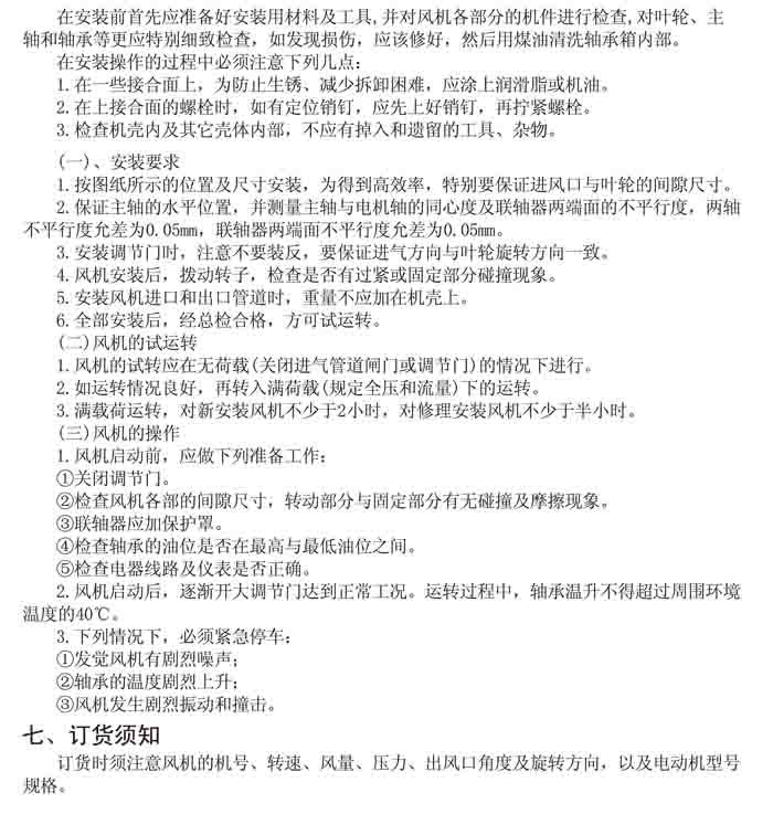 一、風(fēng)機(jī)選用參考、安裝維護(hù)使用說(shuō)明、常見(jiàn)故障分析、訂貨注意事項(xiàng)