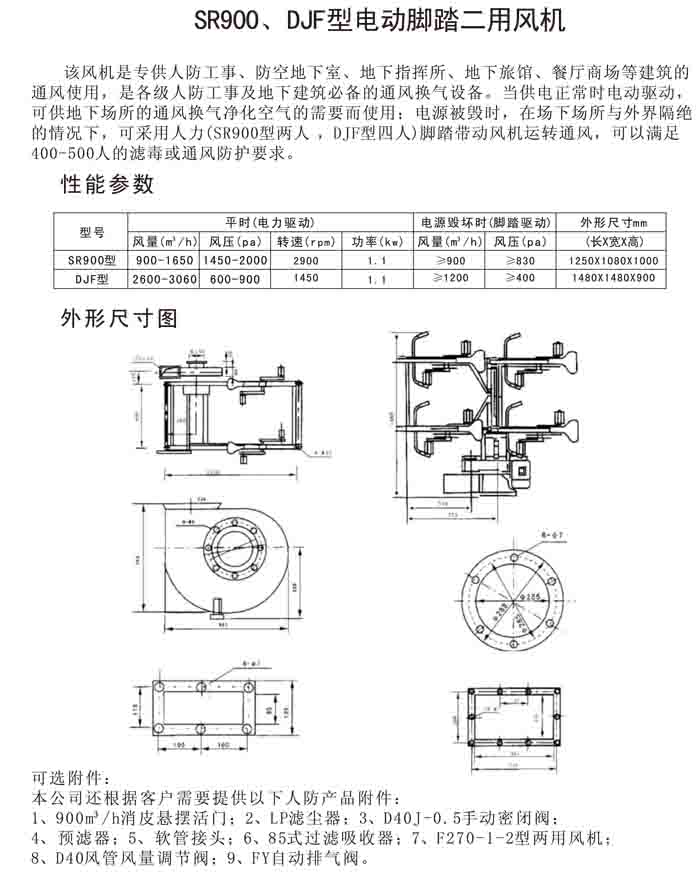 一、DJF-1、SR900 系列電動腳踏兩用風(fēng)機(jī)